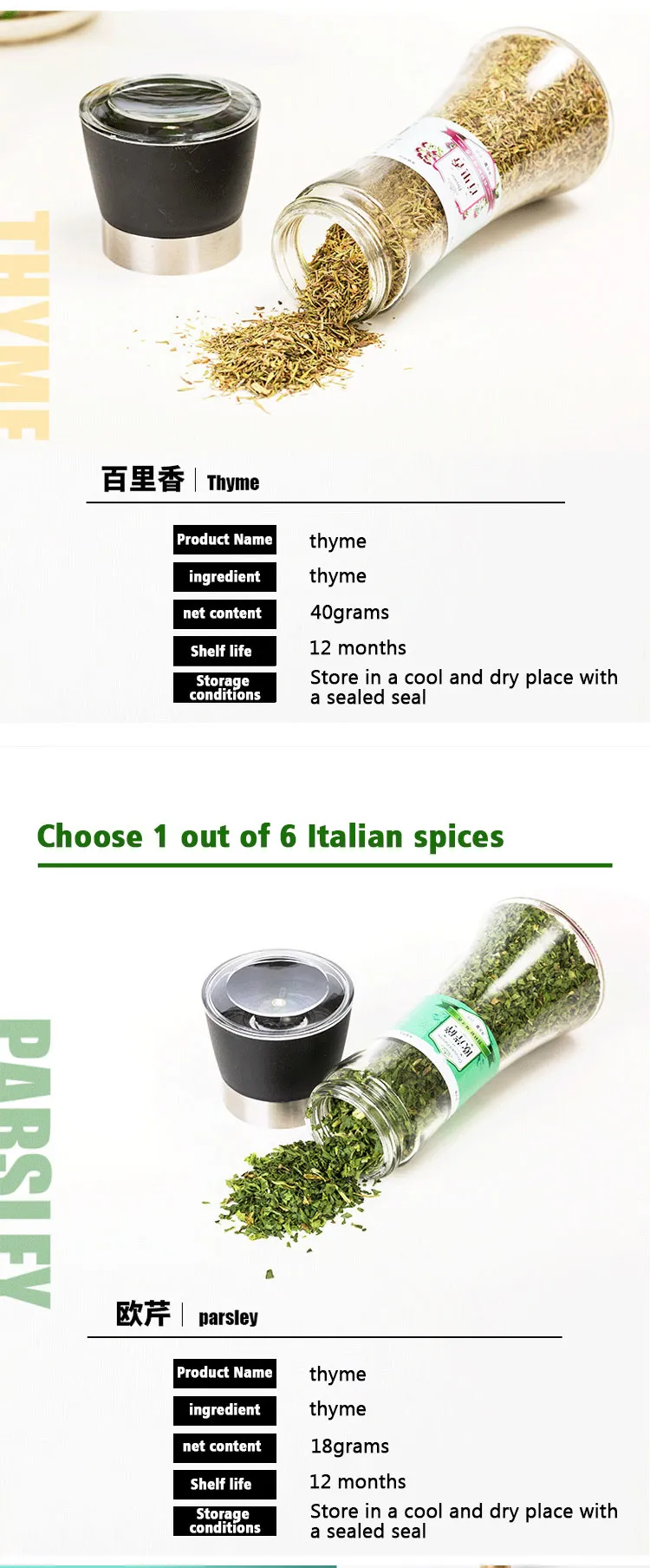 Qingchun Factory Wholesale Customized Grindable Spices Parsley Leaf Rosemary Baked Thyme Oregano Western Food Seasoning